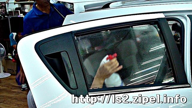 뒤쪽부분의 썬팅이 끝나고 문짝 커버를 부착하고 있다.